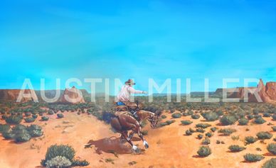 A lone cowboy rides through the open desert, framed by warm earth tones and fading light. This piece captures the spirit of the American West—resilient, solitary, and timeless.